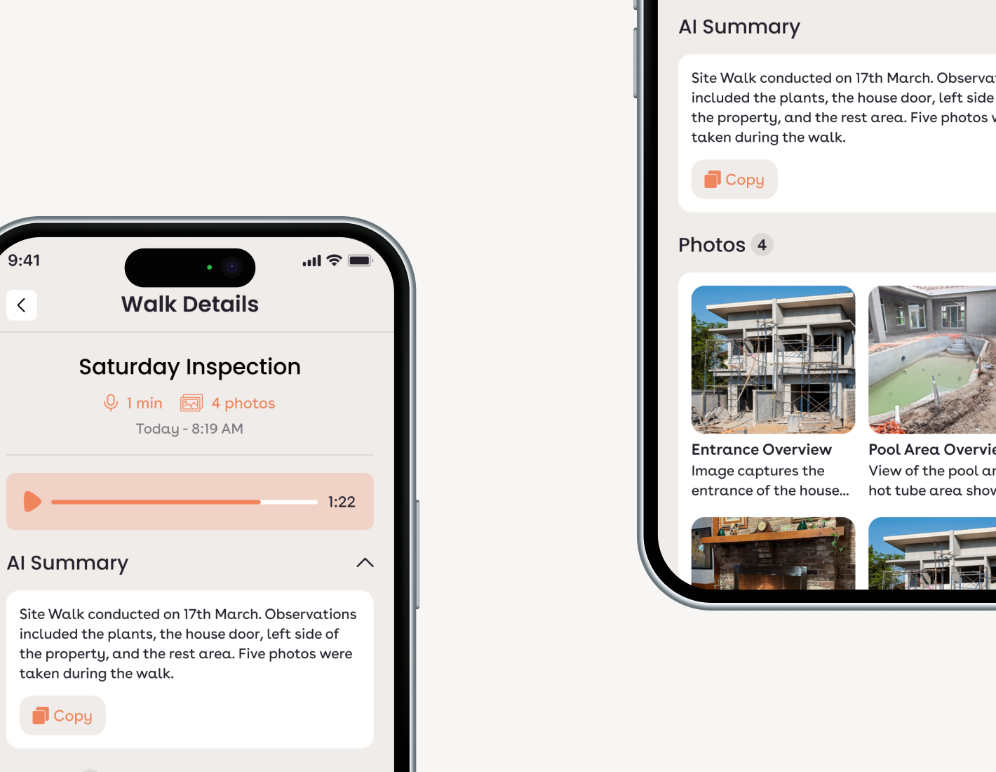 When you finish your walk, SiteWalk generates a clean, professional summary: