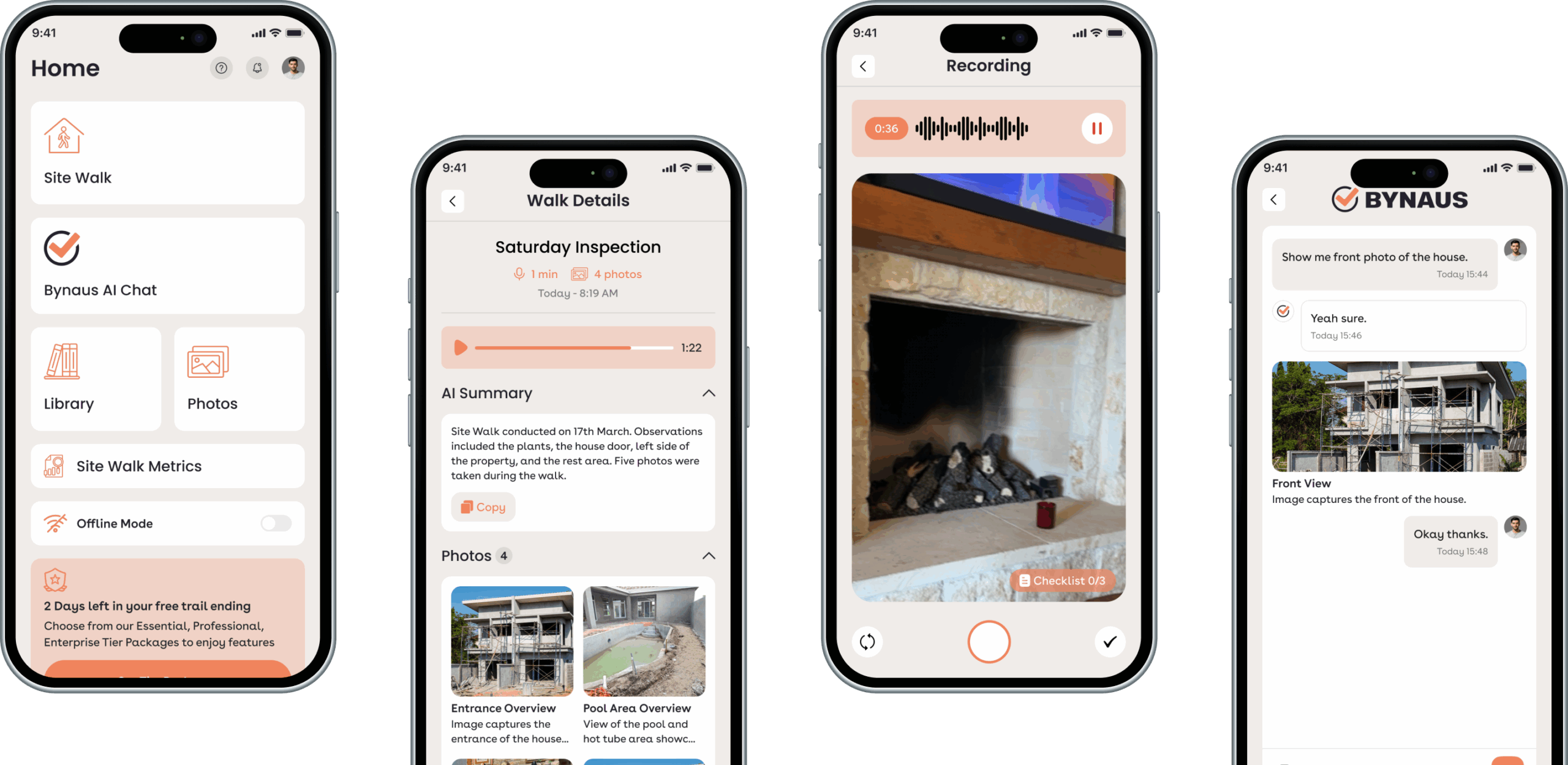 Narrate your walk in any language — Bynaus AI organizes everything automatically. Start walking. Start talking. SiteWalk does the rest.